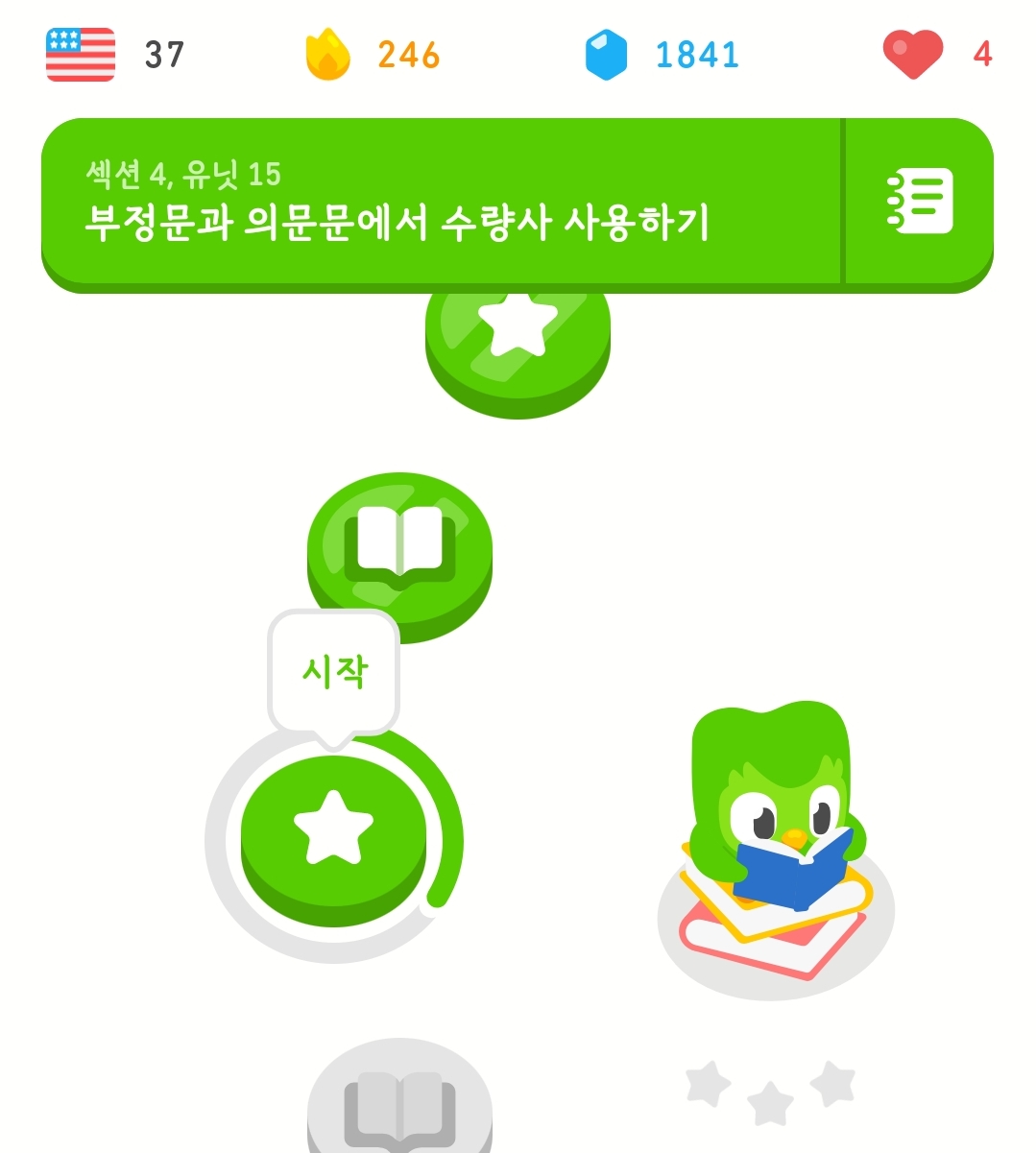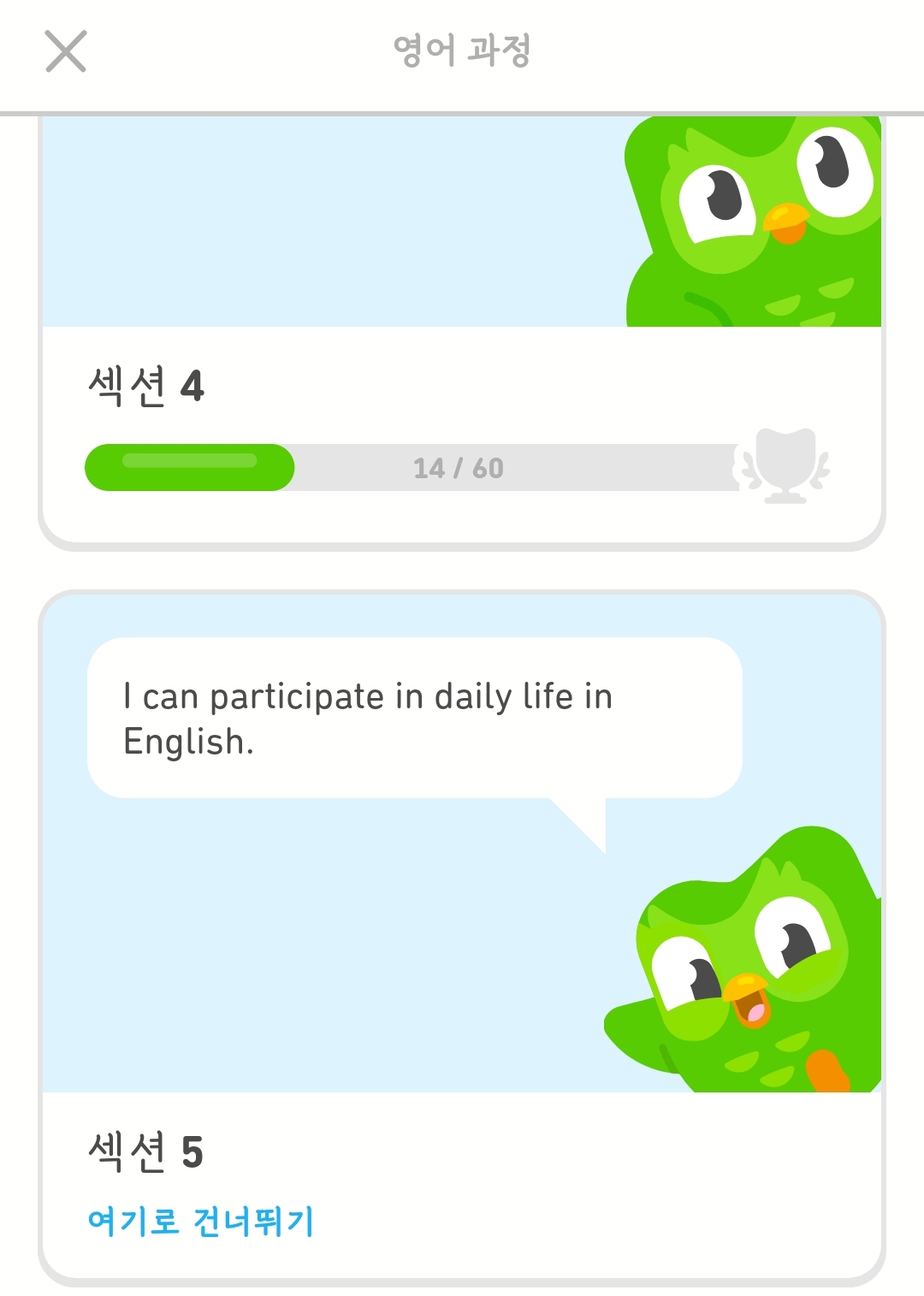 듀오링고의 메인 학습 구조는 마치 모바일 퍼즐 게임의 캠페인 모드와 흡사합니다.