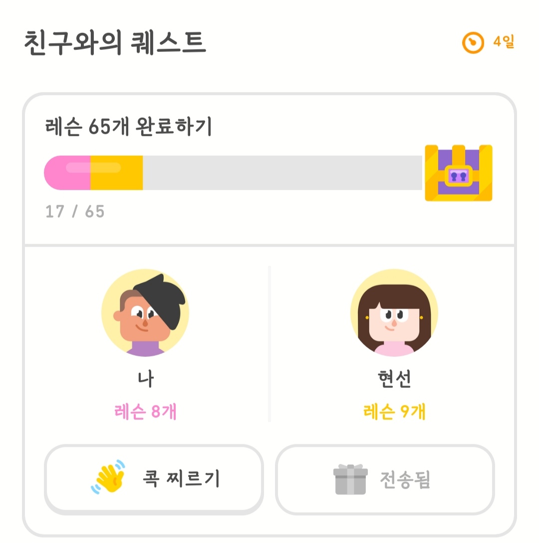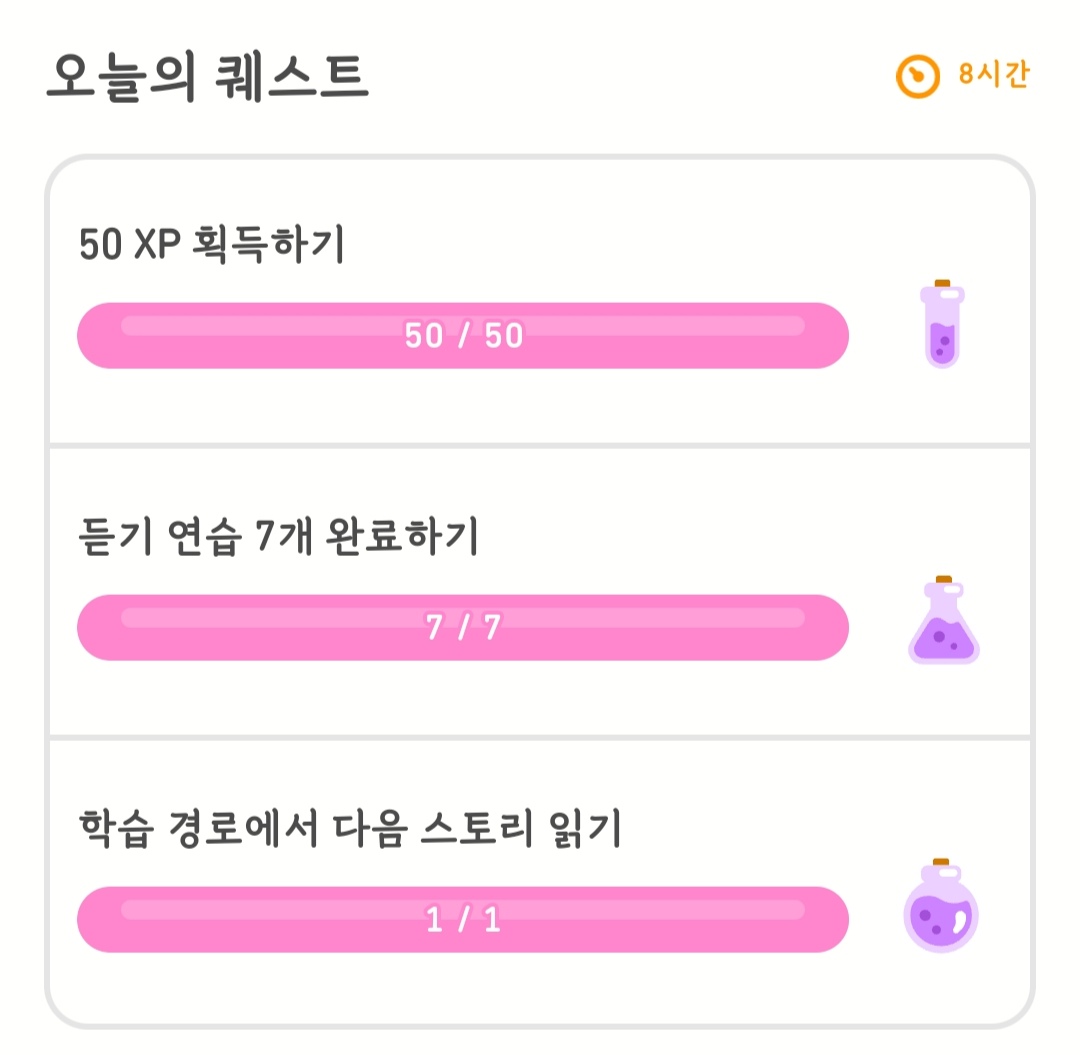 듀오링고에는 다양한 타입의 퀘스트가 존재합니다.
